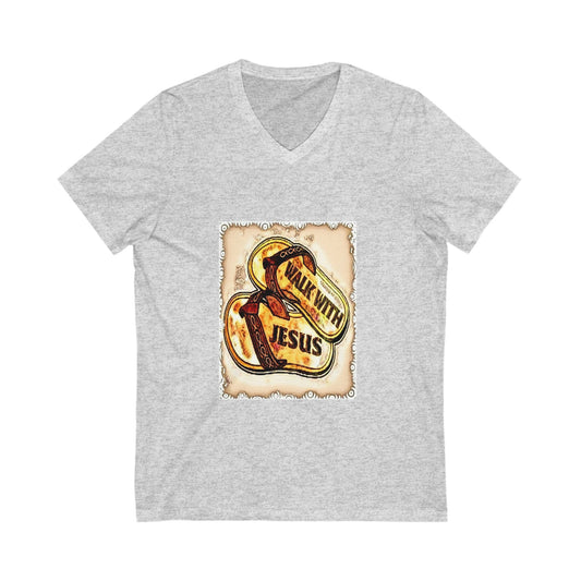 Faith-Inspired Unisex V-Neck Tee, Walk with Jesus T-Shirt, Christian Apparel, Religious Gift, Casual Wear, Church Outfit